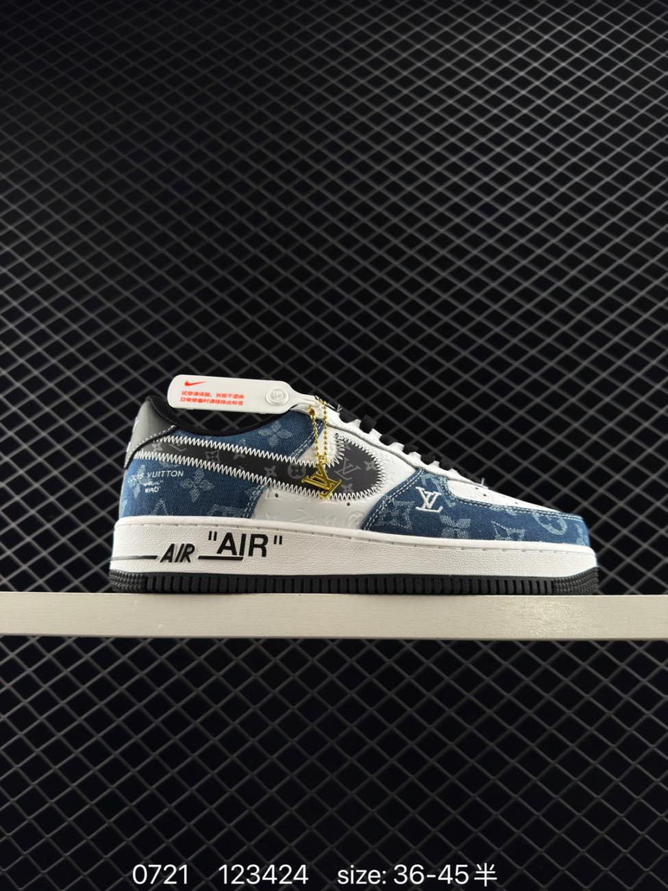 Shoes Sneakers Best Selling overseas popular limited edition high end customized Nike Air Force 1 07 Low Louis Vuitton co branded denim blue