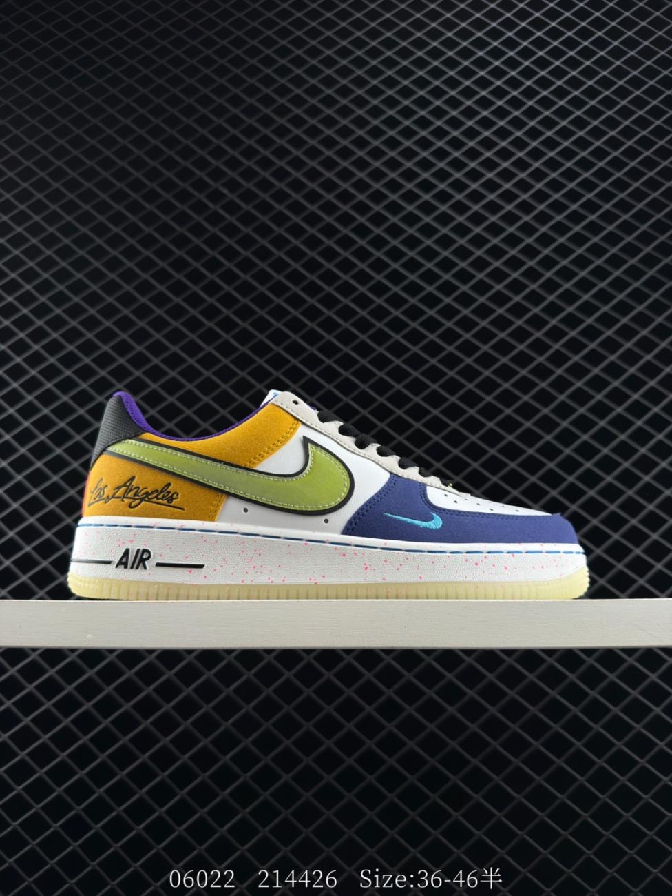 Vivid Colour Shoes Sneakers Nike Men Women Shoes Made Hard Lychee Pattern Transfer Leather Material Paper Edition Los Angeles Team Theme